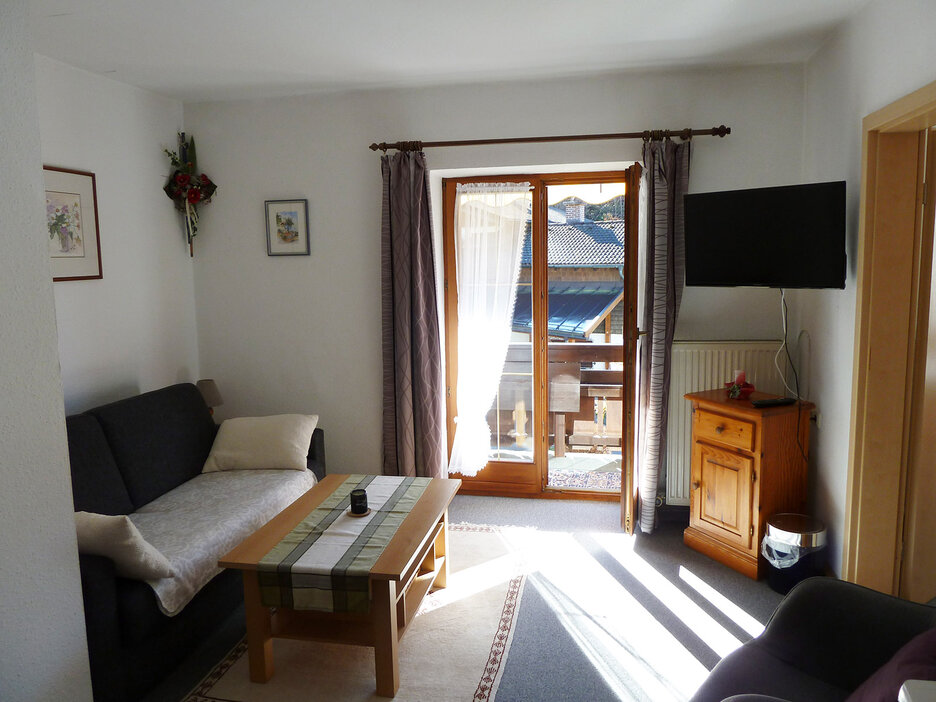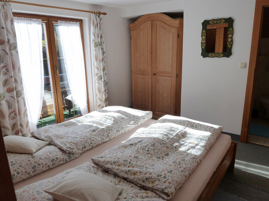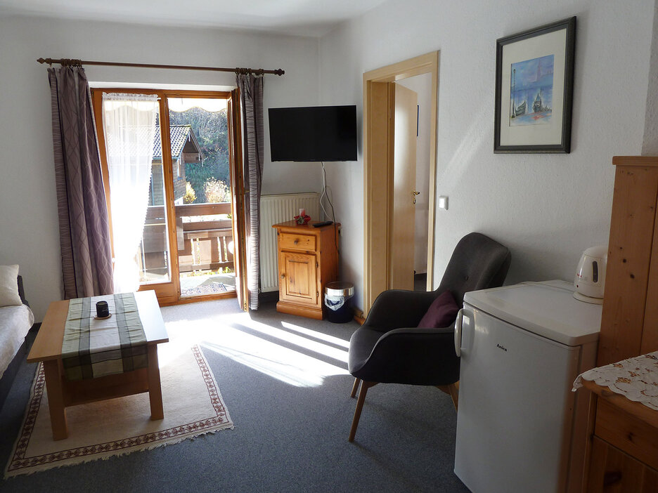 Ein Appartement mit 2 Zimmern Doppelbett und Ausziehcouch. Das Appartement ist mit Dusche und WC, Zentralheizung, TV, 2 Balkone und reichhaltigem Frühstück, Vom großen Balkon haben Sie einen wunderbaren freien Blick auf Watzmann und auf die Berge rund um Berchtesgaden.